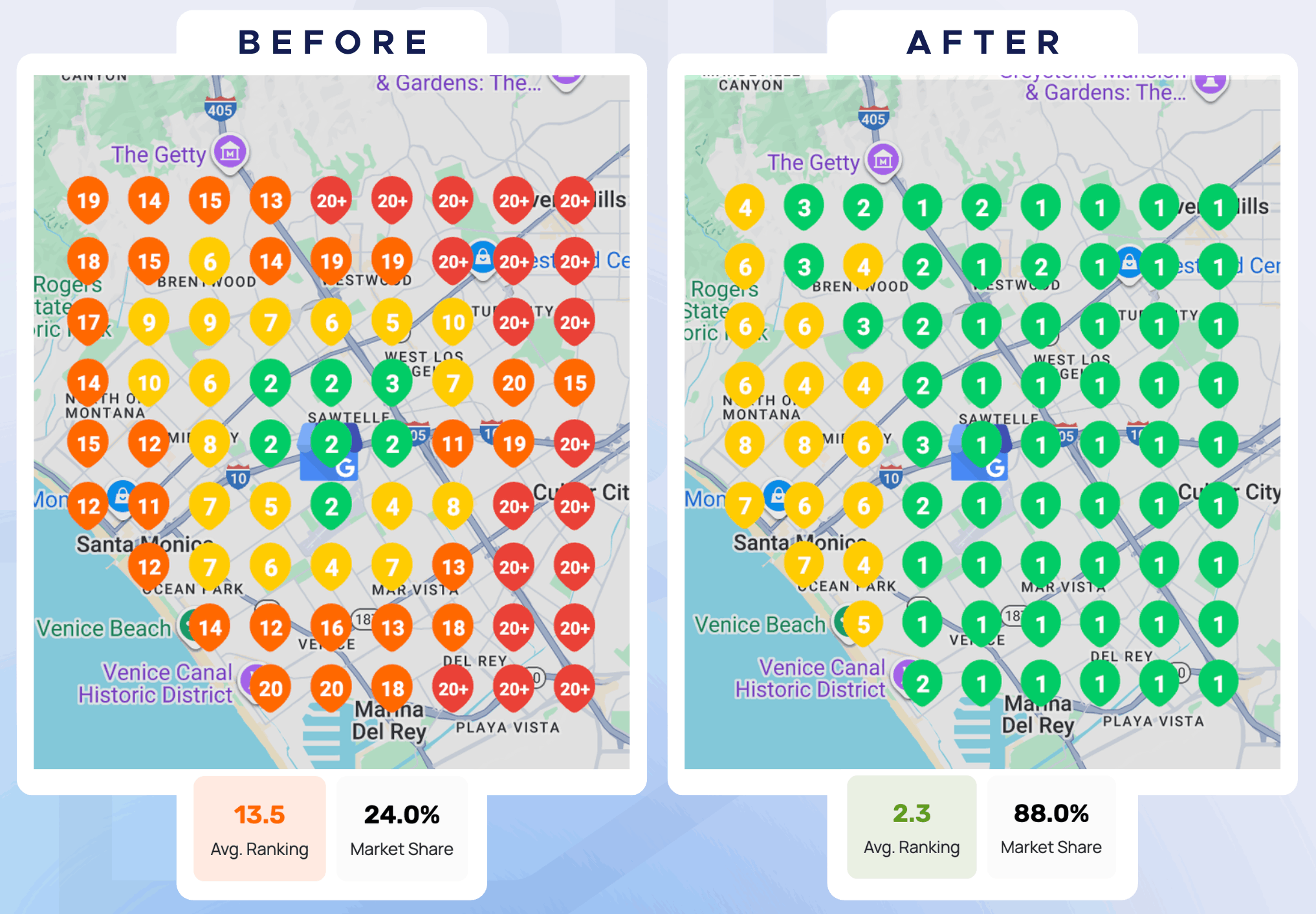 Results achieved Avg. Ranking ‘2 with 88% Market Share after 90 days